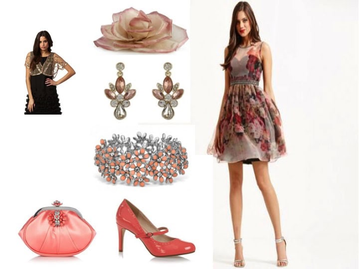 Alice is going to a wonderland party for the UK Blog Awards and the potential of winning a whole new outfit if our mood board also takes the judges fancy at Debenhams. Obviously for a great party you need to be fitted out for the occasion. She visited her local Debenhams and chose a beautiful flower patterned dress, a sparkly natural shrug, a coral peach stiletto shoe and matching bag, then for the jewellery she stuck with the flowery theme with earrings, bracelet and a hairpin flower. She just loves a bit of vintage as well as a touch of colour, so here is the mood board to make her shine and sparkle and experience a wonderful night.